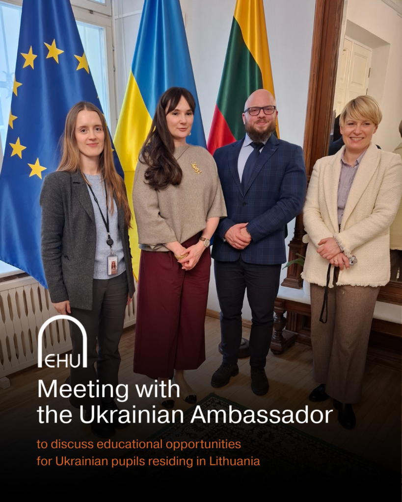 2026 m. vasario 10 d. Užsienio reikalų ministerijos atstovė, LR Užsienio reikalų ministerijos Vystomojo bendradarbiavimo departamento direktorė Aistė Bertulytė-Žikevičienė ir EHU rektorius dr. Vilius Šadauskas susitiko su Ukrainos ambasadoriumi Lietuvoje Olha Nikitchenko.